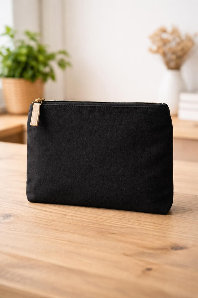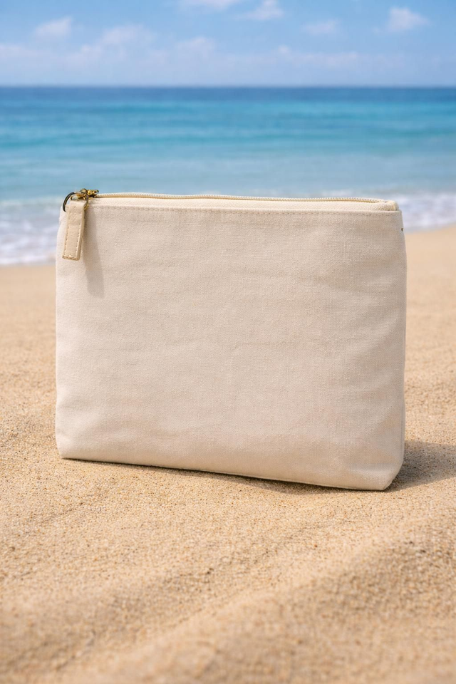 Pochette en toile personnalisée par flocage ou broderie. Idéale pour un prénom, un petit texte ou un motif simple. Parfaite comme trousse de maquillage ou cadeau personnalisé.